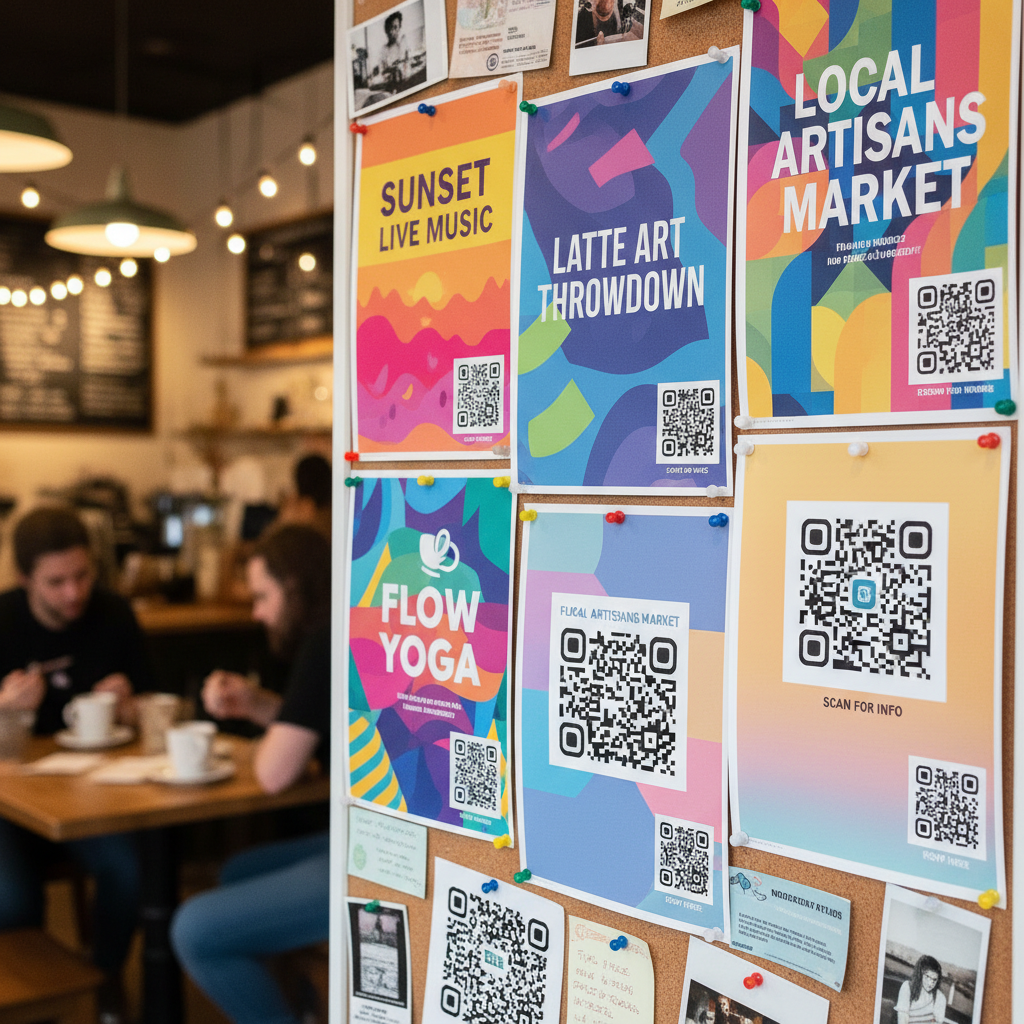Rozdawane na eventach, w knajpach i miejscach, gdzie spotykają się społeczności. Często zawierają kody QR prowadzące do ukrytych stron wydarzeń. Kody QR
